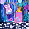 We also engaged in sculpture, the students used timber and glue to create their 3D works, they learnt how to glue timber using masking tape to keep the construction together while it was wet. When the glue was dry, Students took the tape off and painted. At this moment, some students are drawing studies of their sculptures to create a “Magical Landscape” and some others are starting their paintings on canvas. The Monday group will have the opportunity to paint their canvas next term.